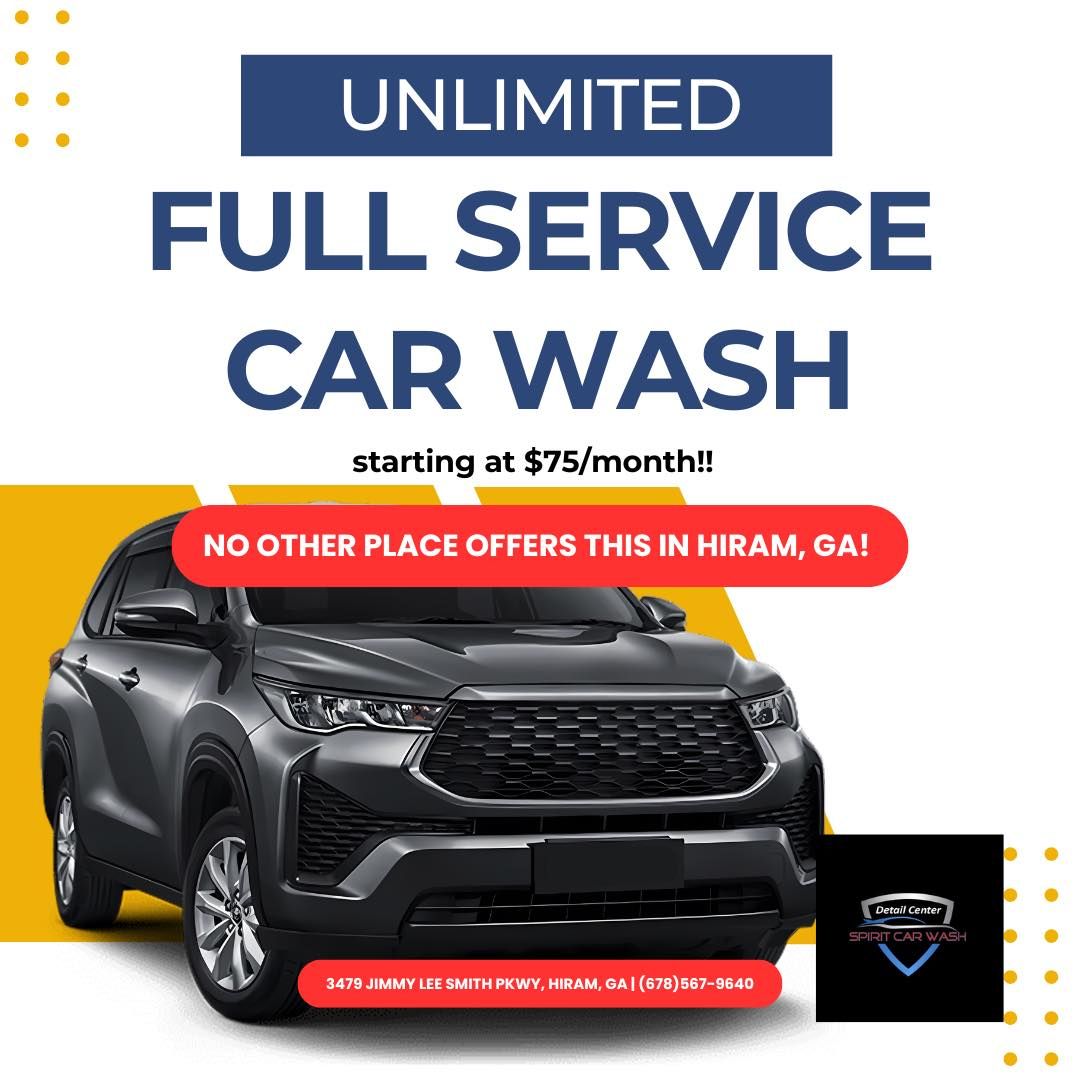 Call Spirit Car Wash & Lube in Hiram to reserve your spot or ask about friends-and-family discounts and unlimited wash memberships.